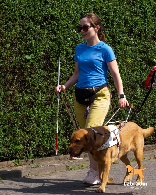 Odkąd Oggy jest z nami, wiele się zmieniło. Odzyskałam samodzielność, sprawczość, ale przede wszystkim nadzieję. Pamiętam, jak pewnego razu jechaliśmy do pracy, a tam znowu na ulicy był remont. Trzeba zaznaczyć, że wcześniej w takich sytuacjach po prostu mnie paraliżowało. Mimo że miałam białą laskę i zawsze prosiłam o pomoc czy dopytywałam innych, przerażała mnie zmiana trasy i to, że nie wiedziałam, czy po takiej zmianie dotrę na czas. Oggy – mam wrażenie – uwielbia takie wyzwania. Tamtego dnia bez problemu zaznaczył mi taśmy, a potem sam ominął zaznaczone miejsce i wrócił mnie na naszą trasę. Przyznam szczerze, że wtedy popłakałam się z wdzięczności i szczęścia. Moje dzieci często mówią, że to nasz Bohater. Staram się dbać, aby czuł się z nami wyjątkowo, ale też aby praca stanowiła dla niego „zabawę”. Na początku byłam mocno zestresowana komendami, utrzymaniem trasy i dbałością o każdy szczegół. Ale teraz, gdy wiele rzeczy przychodzi mi już odruchowo, to oboje mamy wielką przyjemność z wychodzenia z domu.