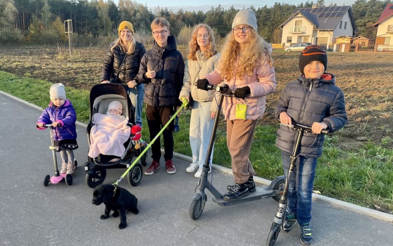 Jestem żoną i mamą szóstki dzieci. Już wcześniej zastanawialiśmy się nad posiadaniem własnego psa, a ponieważ byłam na na urlopie macierzyńskim, to taka forma wolontariatu bardzo nam odpowiadała. Chciałam wraz z rodziną zrobić coś dobrego dla drugiego człowieka. W dzisiejszym świecie pełnym hedonizmu i skupianiu się na własnych przyjemnościach i potrzebach materialnych warto zaangażować się w szczytny cel. Miło jest dostawać prezenty, ale obdarowywanie drugiej osoby daje jeszcze większą radość i satysfakcję. Takie wartości przekazuję z mężem naszym dzieciom. Miałam świadomość, że wychowanie szczeniaka, jego socjalizacja, nauka, wspólny udział w treningach nie będą łatwe. Ale ja lubię wyzwania, więc przedstawiłam moją propozycję rodzinie, która była zachwycona pomysłem. Zgłosiłam się do Fundacji, pragnąc zostać wolontariuszem. Wraz z mężem przeszłam szkolenie i czekaliśmy na pieska.