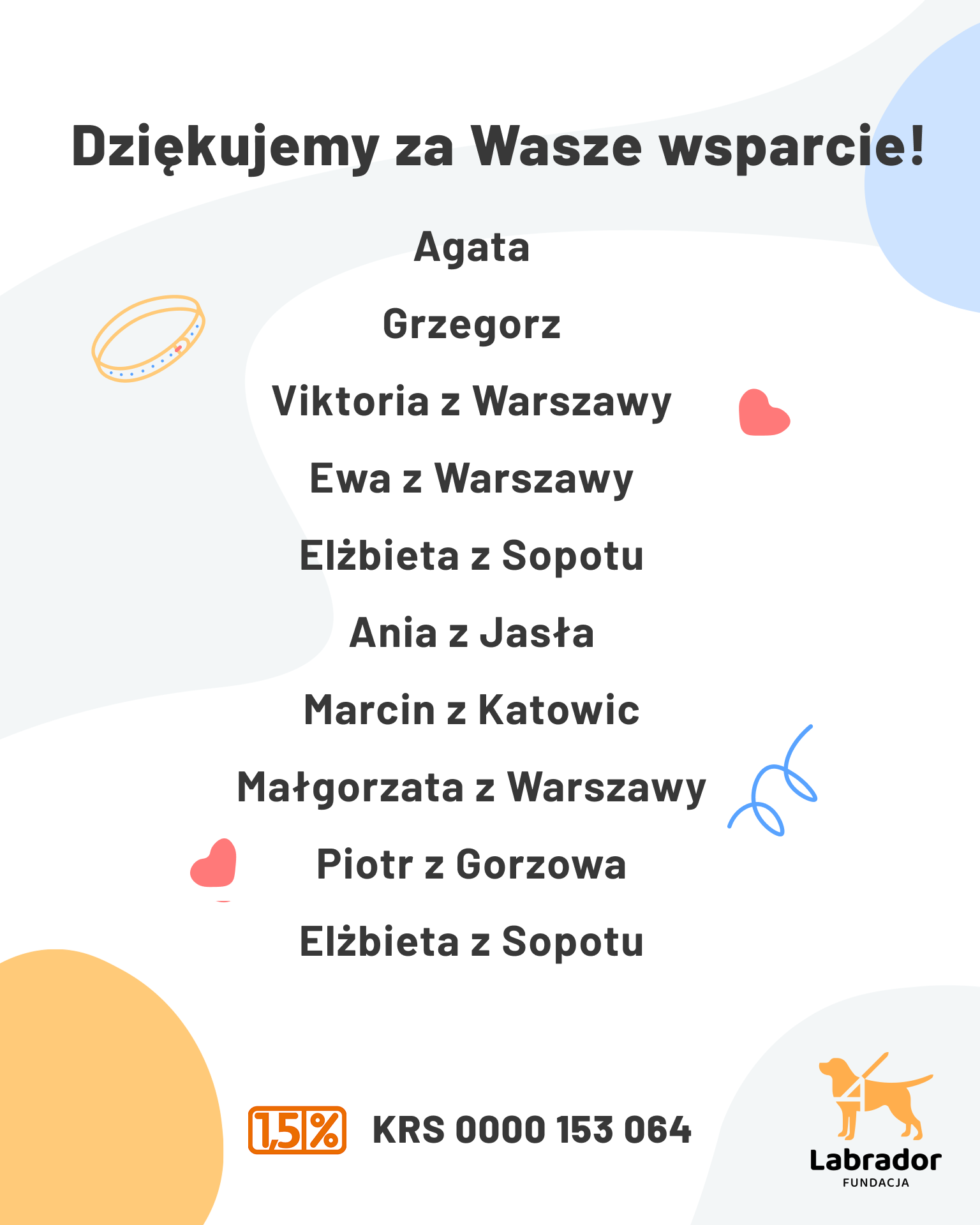 Nowy rok szkolny rozpoczęty! To doskonała okazja, by z uśmiechem wywołać naszych Darczyńców do tablicy. Nie będzie trudnych pytań – zamiast tego płyną w Waszą stronę same wyrazy wdzięczności. Dziękujemy, że w sierpniu, pomimo wakacyjnych wyjazdów, znaleźliście przestrzeń, by pamiętać o naszej Fundacji. Wasze wsparcie pozwala nam nieprzerwanie prowadzić „lekcje” w szkole dla psów asystujących i przygotowywać je do roli niezastąpionych pomocników osób z niepełnosprawnością.
