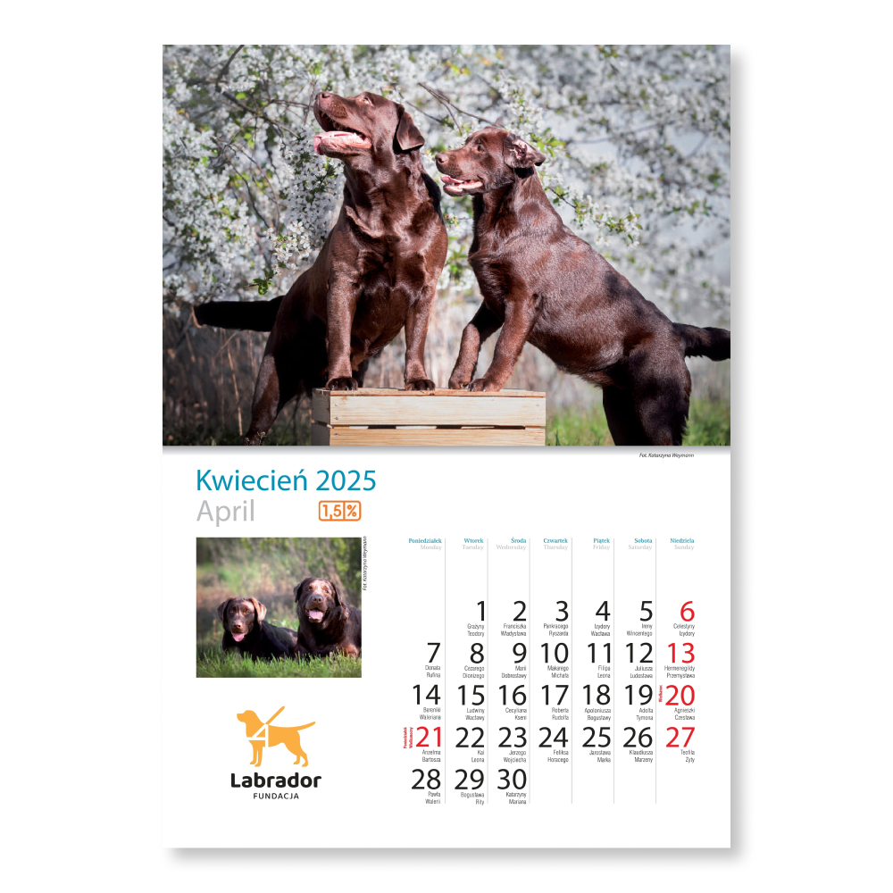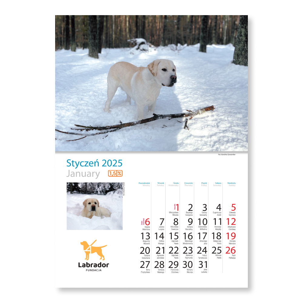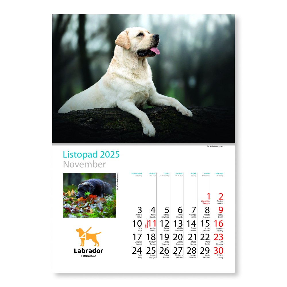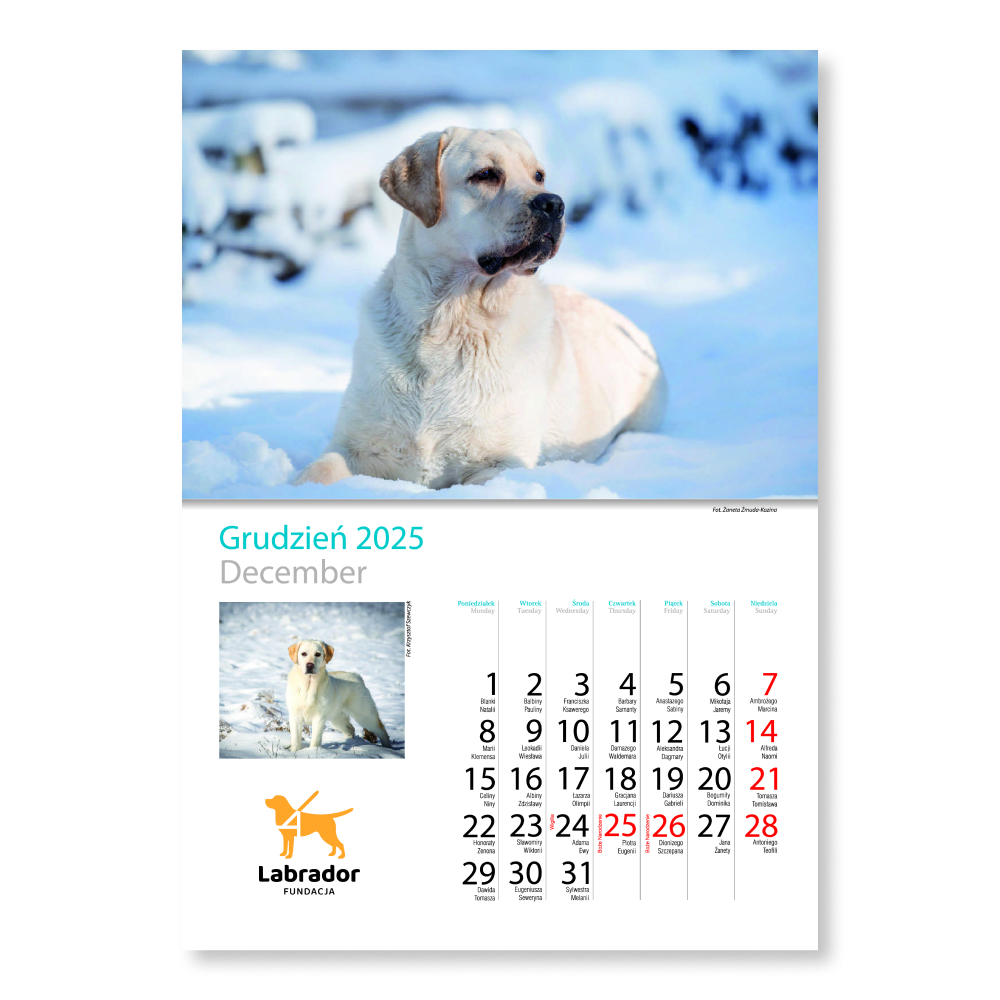 Kalendarz - na 2025 rok dostępny jest do nabycia w naszym internetowym sklepiku – wspieram.fundacja.labrador.pl