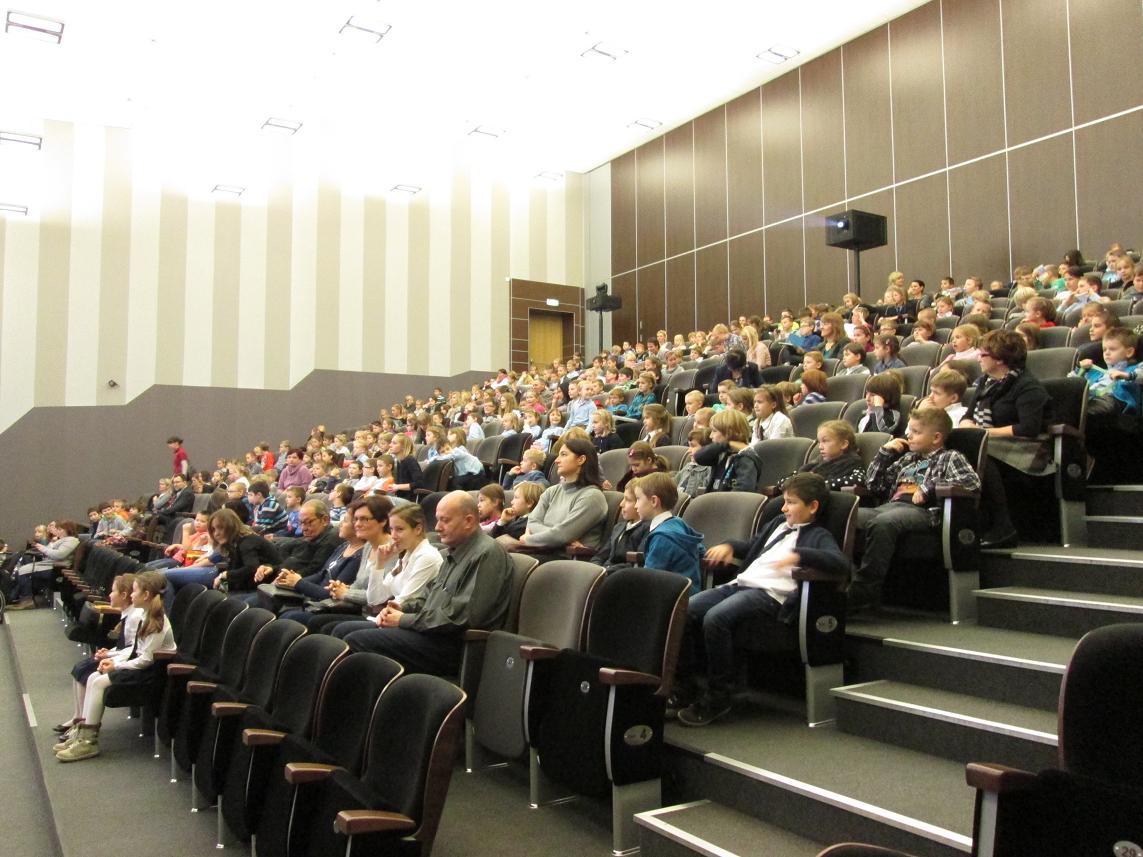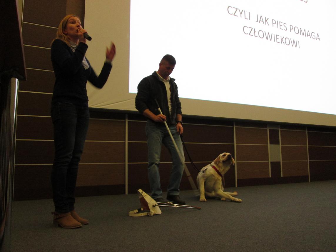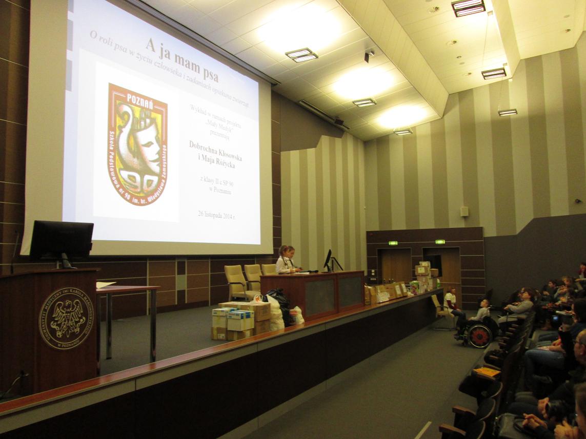 Wczoraj mieliśmy ogromną przyjemność uczestniczyć w projekcie „Mały Medyk” - Polskiej Akademii Dzieci w Uniwersytecie Medycznym im. Karola Marcinkowskiego w Poznaniu. Instruktorzy Fundacji opowiedzieli młodym słuchaczom o roli psa przewodnika w życiu osób niewidomych. Na sali zebrało się blisko 400 słuchaczy, którzy z wielkim zaangażowaniem wysłuchali prelekcji i brali bardzo aktywny udział w dyskusji. W tym czasie Ursus spokojnie spał:) Dziękujemy organizatorom za bardzo miłe spotkanie!