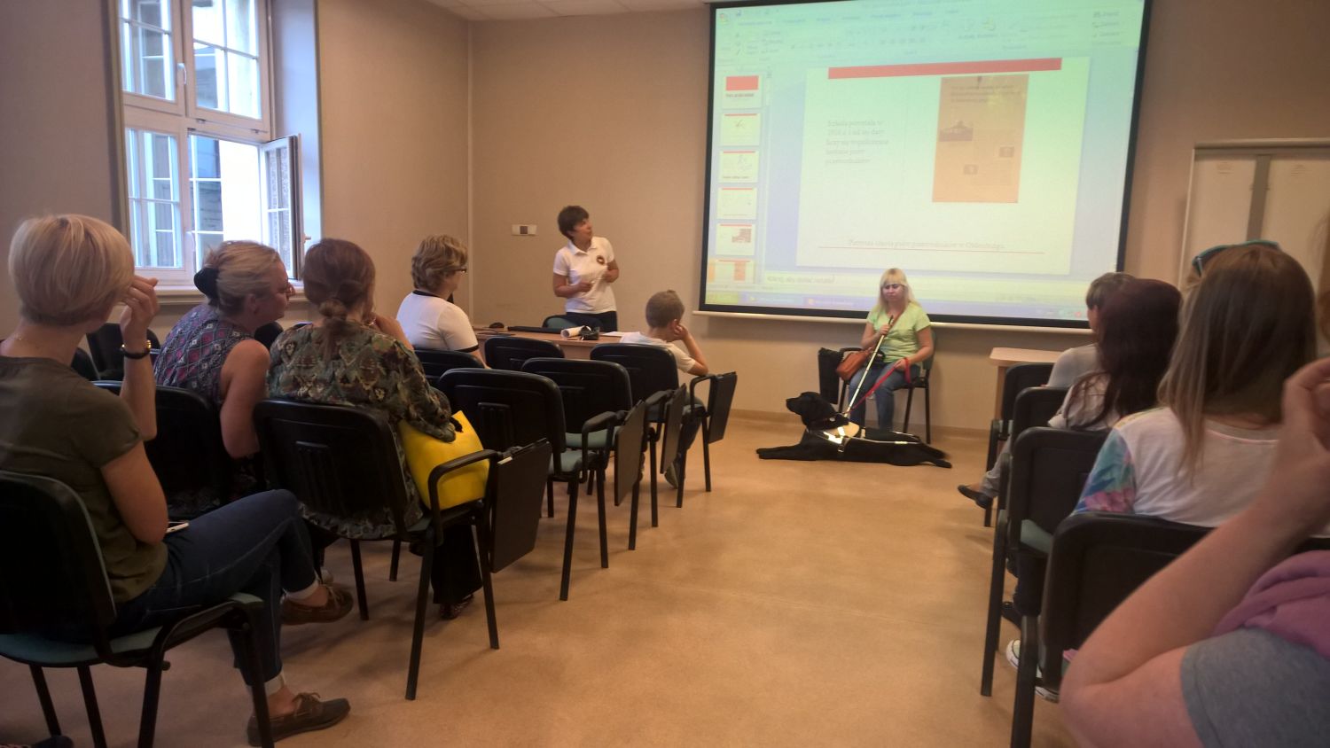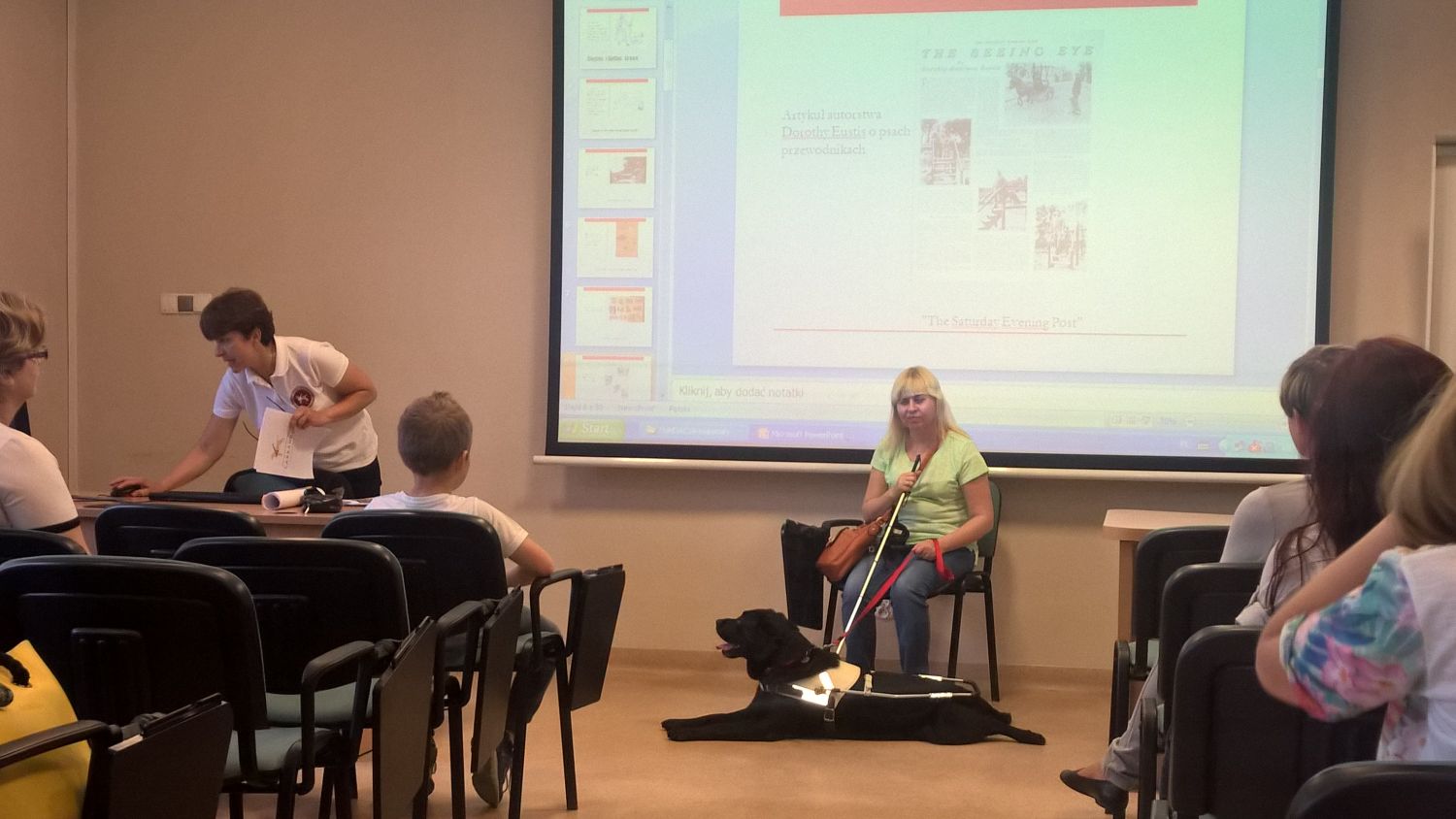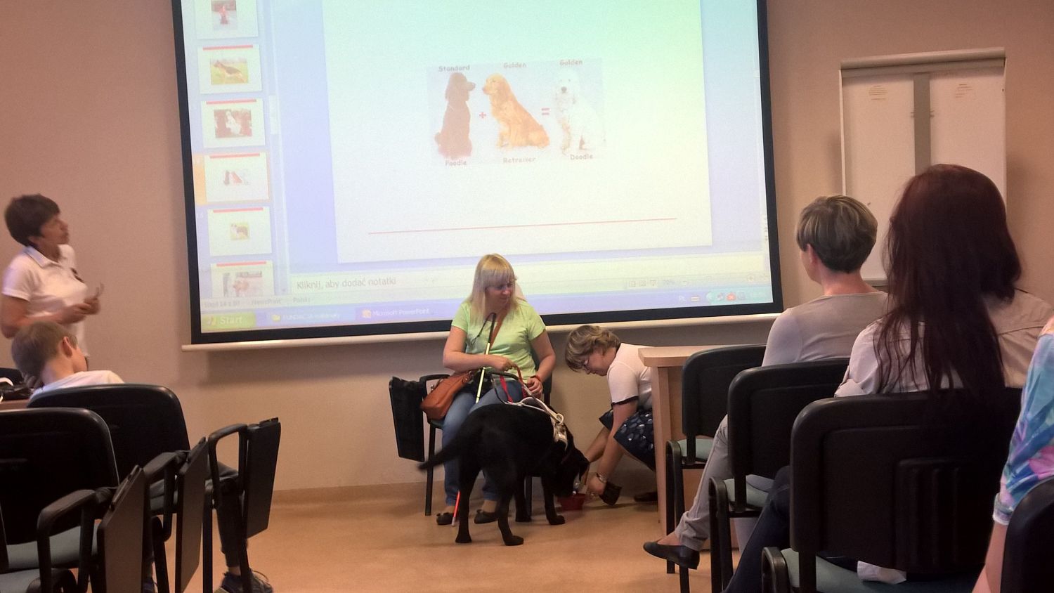 Spotkanie składało się z dwóch części . Pierwsza poświęcona była krótkiej historii psa przewodnika na świecie i w Polsce oraz metodom wyboru , szkolenia i doboru psa do osoby niewidomej. W drugiej Klientka Fundacji Pani Katarzyna Domańska opowiadała o swojej pracy z Sambą – 7 letnią suczką rasy labrador retriever.