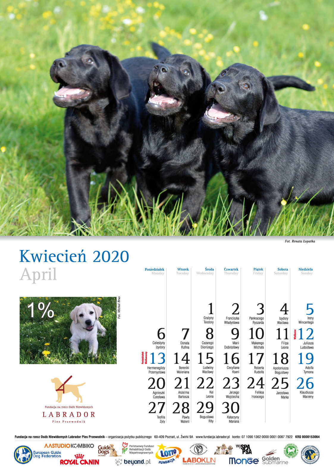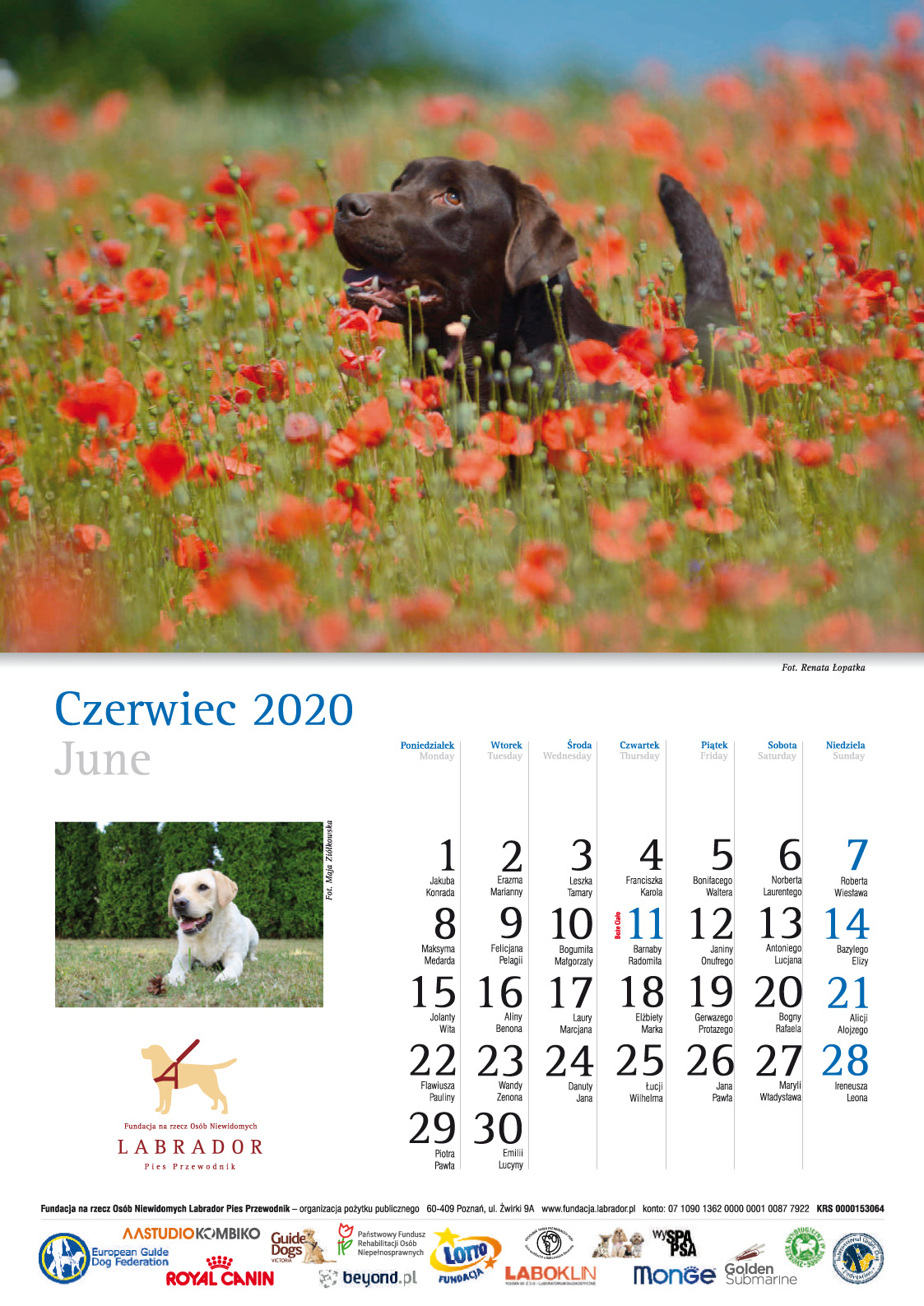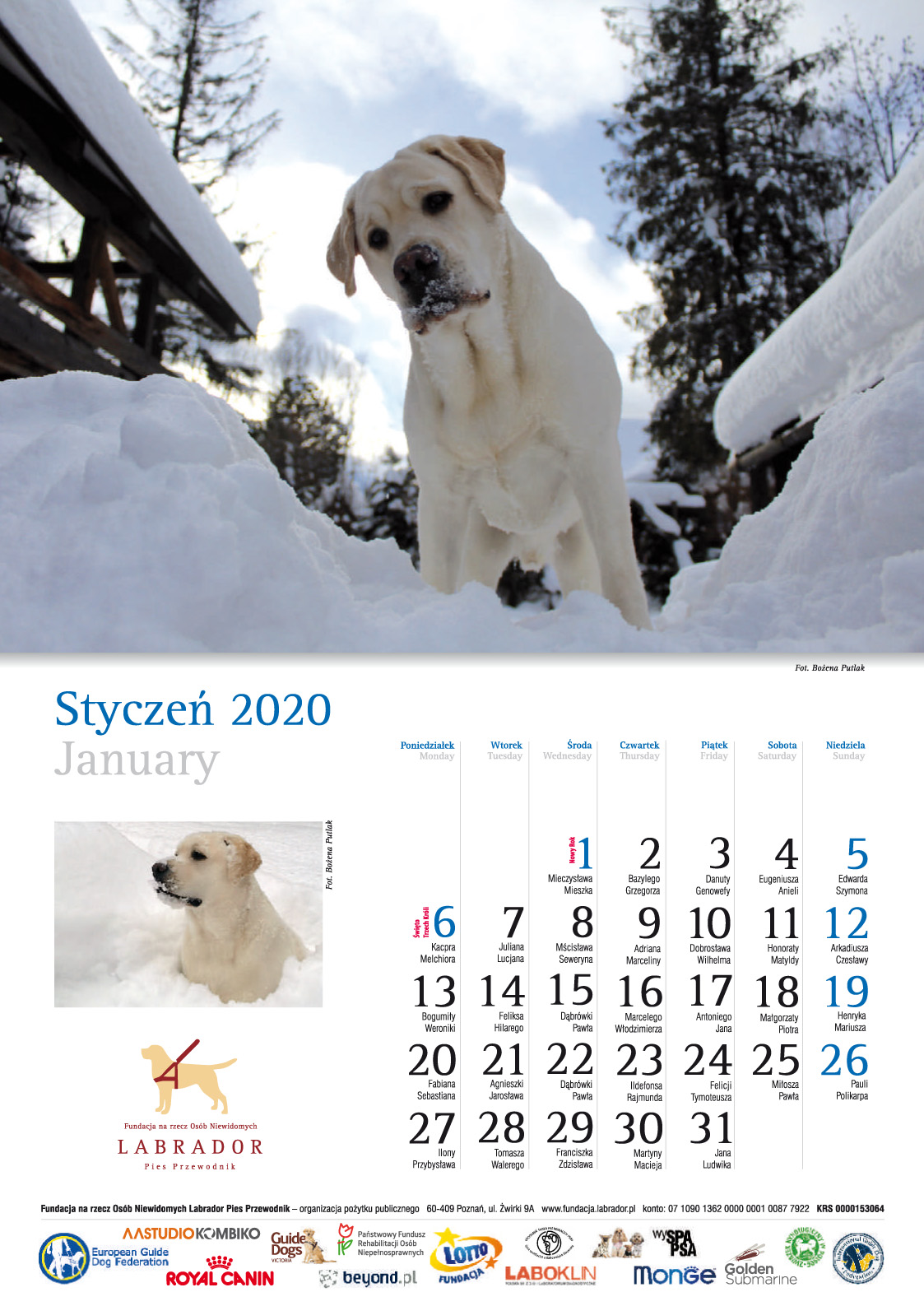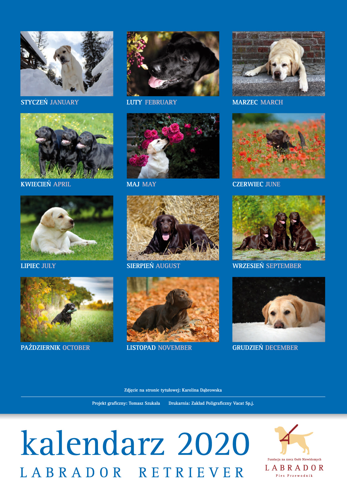 Na zakończenie tradycyjnie już dziękujemy Autorom zdjęć. Dziękujemy również wszystkim darczyńcom, którzy w różnych formach wspierali Fundację. Pragniemy zapewnić, iż zarówno darowizny jaki i dochód ze sprzedaży Kalendarza zostaną wykorzystane zgodnie z ich przeznaczeniem czyli na realizację celu statutowego Fundacji Labrador Pies Przewodnik.