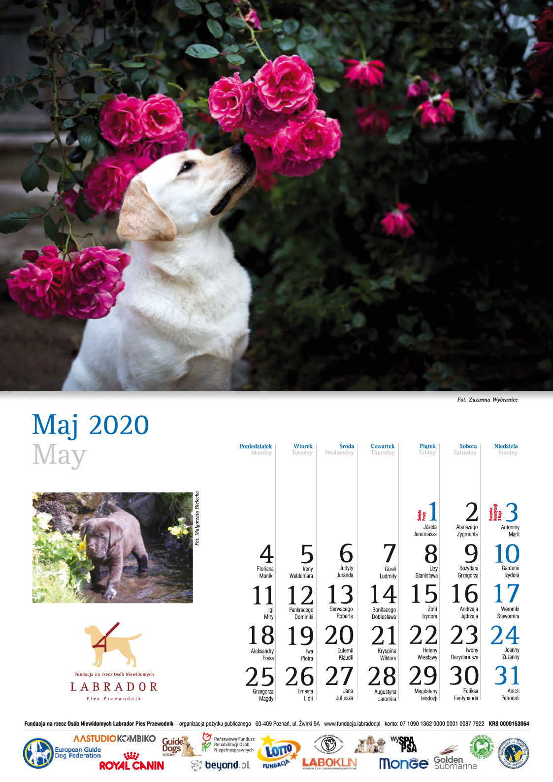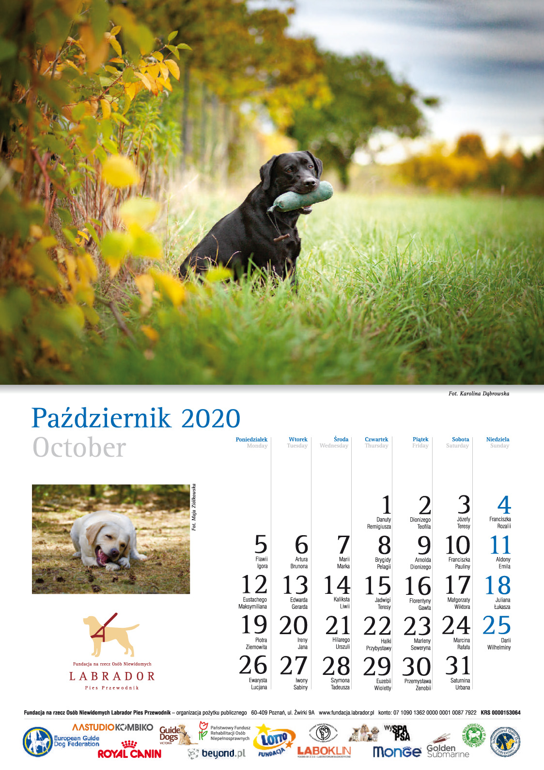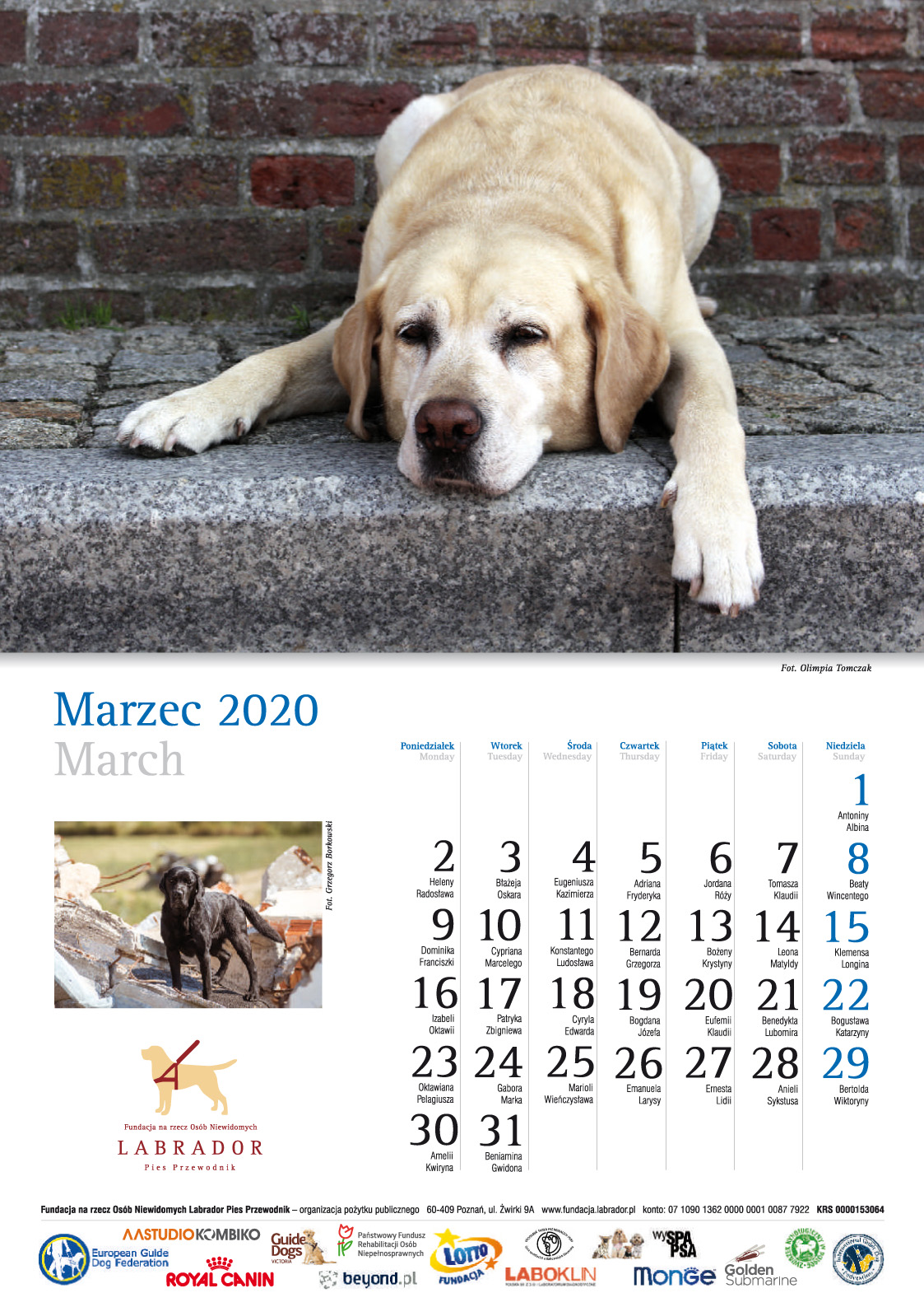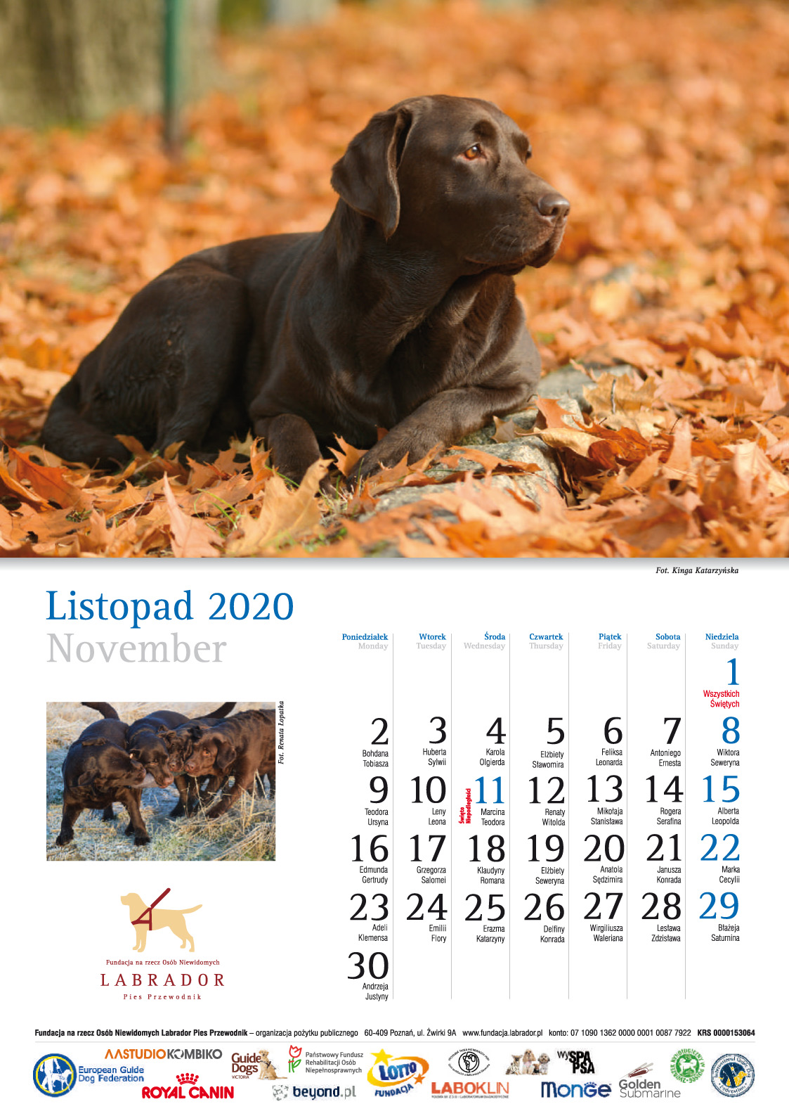 Na zakończenie tradycyjnie już dziękujemy Autorom zdjęć. Dziękujemy również wszystkim darczyńcom, którzy w różnych formach wspierali Fundację. Pragniemy zapewnić, iż zarówno darowizny jaki i dochód ze sprzedaży Kalendarza zostaną wykorzystane zgodnie z ich przeznaczeniem czyli na realizację celu statutowego Fundacji Labrador Pies Przewodnik.