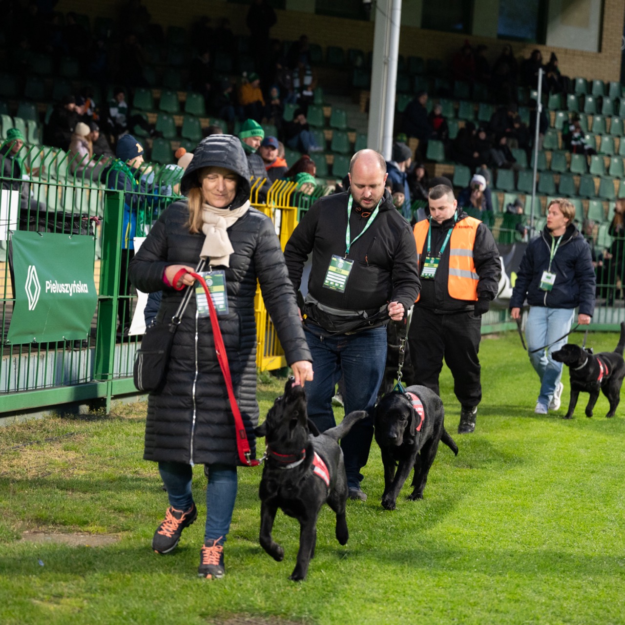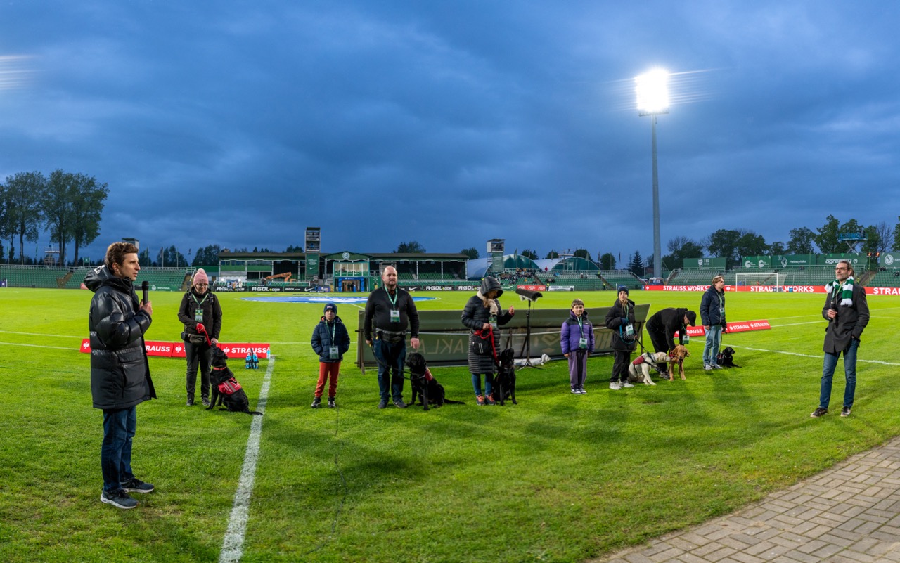 W poniedziałek 22 kwietnia kibicowaliśmy zawodnikom poznańskiego klubu podczas wygranego 5:2 meczu ze Stalą Mielec. Sportowe emocje nie przyćmiły jednak naszej misji – w tych dość niecodziennych okolicznościach przeprowadziliśmy trening psiaków. Mieliśmy także okazję podczas przerwy opowiedzieć kibicom o idei współpracy z Wartą Poznań.